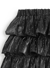光沢感のあるドット柄のオーガンジー生地で仕立てたロングスカート。何段にも重ねたティアードデザインがふんわり広がり心ときめく一着。