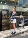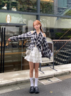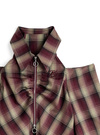 クラシカルなチェック柄に、スポーティなダブルジップを組み合わせた。肩を覗かせるオープンショルダー仕様で、女性らしさをアップグレード。