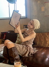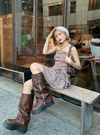 マットで柔らかいテクスチャーの生地なので、甘すぎない印象に仕上げた一着。