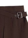 クラシカルなムード漂うラップデザインのプリーツスカート。ベルトモチーフでアクセントを効かせ、こなれ感のあるルックスに。