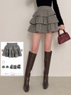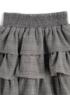 シックなグレンチェック柄がレトロな雰囲気を漂うわせるミニスカート。3段のティアードフリルで、ふんわりとボリュームのあるシルエットをメイク。