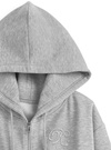 暖かくて着心地の良い裏起毛スウェット素材のセットアップ。パーカーの胸元にはラインストーンロゴをあしらい、さり気ないアクセントをプラス。