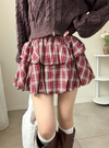インパン裏地付きチェック柄ティアードバルーンミニスカート[tu1916]