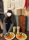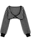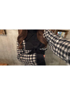 ふんわりとしたシャギーボレロとタイトなキャミソールワンピのアンサンブル。コーデのアクセントになる、クラシカルなチェック柄のボレロ。