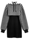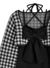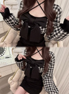 チェック柄シャギーボレロ×ホルターネックリボンミニワンピースアンサンブルの商品詳細情報のページです。
