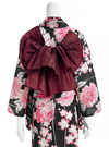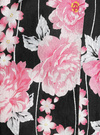 シックなブラックに鮮やかなピンクの花柄を浮かべた存在感のある浴衣。牡丹や桜モチーフのデザインが、上品で華やかな印象を与えてくれる。