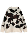 インパクト抜群の牛モチーフ柄をあしらった主役級のニットトップス。表面を起毛させることにより、ふんわりと柔らかな手触りに仕上げた。