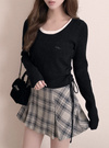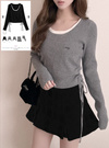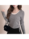 サイドドロストリボンレイヤード風リブニットトップス[tu1966]