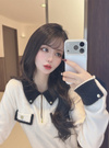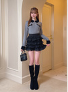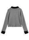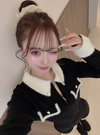 ふわふわのシャギーカラーが顔まわりを華やかに演出するニットアイテム。胸元にあしらったハート型のゴールドボタンもガーリーなワンポイント。