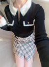 シャギーカラー配色ハーフジップニットトップスの商品詳細情報のページです。