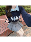 襟付きの仕様にアーガイル柄がきちんと感のある印象に。