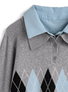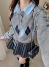 アーガイル柄シャツレイヤード風ニットトップス[tu1970]