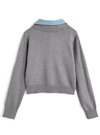 シャツを重ね着したようなレイヤード風デザインのニットトップス。