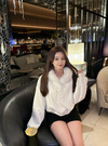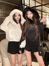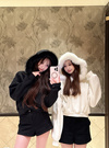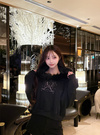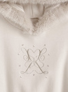 ふわふわのエコファーをあしらったボリューミーなフードが魅力のパーカー。フロントには曲線的なロゴ刺繍を施し、パールやラインストーンもトッピングすることで華やかな雰囲気に仕上げた。