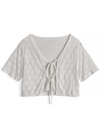 カーデもお花モチーフの編み柄やフロントリボンで甘めな仕上がり。
