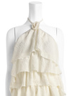 首元のホルターネックやバラモチーフも、女性らしさを際立たせるポイント。