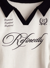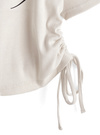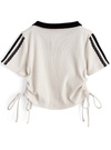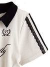 ユニフォームのようなスキッパーカラーとロゴプリントがスポーティーな雰囲気。レースラインやドロストリボンをあしらうことで、ガーリーミックスに仕上げたデザイン。