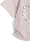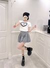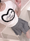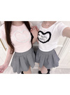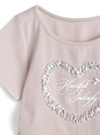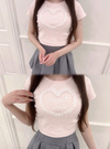 フロントのハート型レースがとびきりガーリーな印象を与えるトップス。伸縮性抜群のリブ素材を使用しており、程よいフィット感で着心地◎。