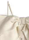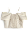 フロントの大きなリボンが目を惹くガーリームードたっぷりのトップス。ツイード調の素材を使用することで、上品さも感じさせるルックスに仕上げた。
