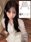 胸元の華奢なリボンが甘さを添えるアクセント。