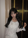 やや広がったフレアスリーブの袖口にはメロウをあしらい、華やかな手元を演出。