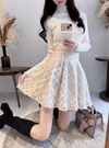 シアー生地にモコモコの糸やラメ糸を織り込んだ、特別感満載のスカート。動く度にキラキラと煌めき、華やかな雰囲気を演出してくれる。