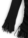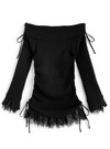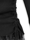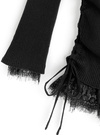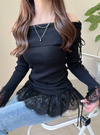 折り返しデザインのオフショル仕様で程よい肌見せが叶うトップス。袖口と裾部分に同色のレース素材をドッキングし、さり気ない甘さをプラス。