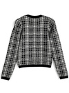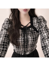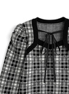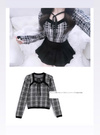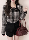 上品なチェック柄が大人フェミニンな雰囲気を演出するニットトップス。デコルテのレイヤード風ディテールにリボンを添えた、こだわりの華やかデザイン。