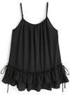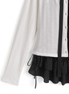 タイ付きドット柄フリルキャミソール×カーディガンアンサンブルの商品詳細情報のページです。