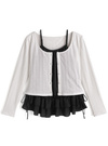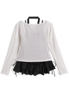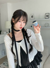 セットで着用すると、カーデからキャミのフリルやリボンが覗くレイヤードコーデの完成。