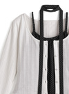 首元に付属の同柄タイを巻けば、さらに統一感のあるスタイリングに。