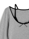 うっすらとした主張しすぎないドット柄に針抜きデザインを施したトップス。ネックラインのパイピングやさり気ないリボンモチーフがアクセントに。