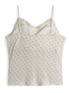 フラワーとドットの細かい柄をあしらったナチュラルガーリーなキャミソール。バストラインには繊細なレースデザインを施し、ランジェリーライクに仕上げた。