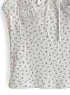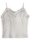 繊細な針抜きデザインに小さめのフラワー柄が可憐な印象のキャミソール。ネックやバストラインにレースをあしらい、ガーリームードたっぷりに仕上げた。