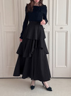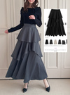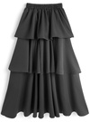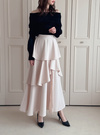 さらりとした落ち感のある素材を使用したフリルスカート。アシンメトリーなティアードデザインが動きのあるシルエットを演出。