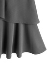 アシンメトリーなラッフルフリルが優雅で上品な印象を与えるスカート。膝下あたりから広がったマーメイドフレアのシルエットもエレガント。