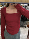 スクエアネックはデコルテを綺麗に映し出し、ヘルシーな肌見せを演出。