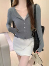 配色ボタンリブカーディガンの商品詳細情報のページです。
