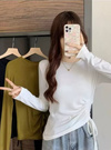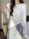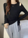 ストレッチの効いたリブ素材で着心地が良く、デイリー使いにおすすめのトップス。片側の肩部分にカットアウトを施し、さり気ない肌見せをオン。