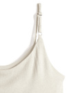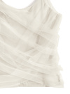 柔らかなニットソー生地に異素材ドッキングを施したキャミソール。クロス状にチュールをあしらうことで、ボリュームを持たせた華やかなデザイン。