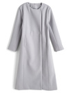 襟元と袖口にあしらったエコファーが華やかさを添える、エレガントなロングコート。