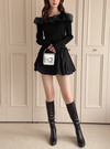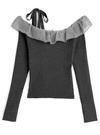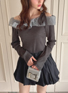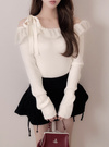 オーガンジーフリルリボンリブニットトップス[ze946]