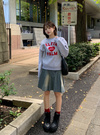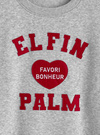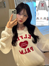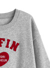 インパクトのあるフェルトロゴが目を惹くスウェットトップス。ハート型で女の子らしさが引き立つデザイン。