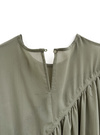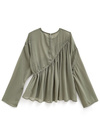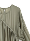 大胆に斜めに切り替えたギャザーが揺れるトップス。