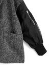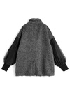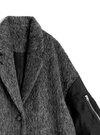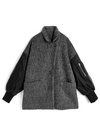 異素材ドッキングが目を惹く個性派ジャケット。身頃は毛足の長いシャギー素材、袖はスポーティーなナイロン切り替えでコントラストを効かせた。