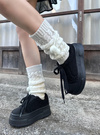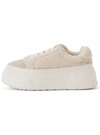 暖かみのあるもこもこのボアをあしらった、季節感あふれる厚底スニーカー。ボリュームのあるソールが脚長効果を叶えてくれる。