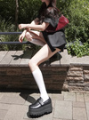2層に重ねたような厚底で印象的な足元をメイク。アッパーはベーシックなローファーデザインなので、コーデを選ばず合わせやすい。