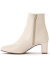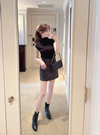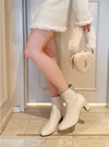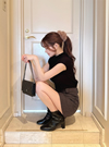やや艶のあるしっかりとした生地感が魅力のショートブーツ。硬めのフェイクレザーは型崩れしづらく高見効果◎。