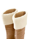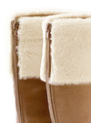 しっとりとしたフェイクスエードに、ボアの折り返しデザインを施した。大胆な切り替えが目を引くアクセントとなり、足元を愛らしく飾る。
