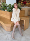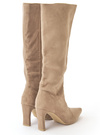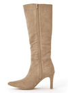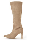 柔らかいスエード調素材を使用した品のあるロングブーツ。シャープなポインテッドトゥで足元をすっきりと女性らしく見せてくれる。